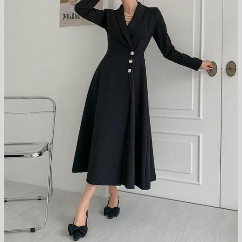 [굿쇼핑몰_의류]페미닌 2컬러 브이넥 여리여리핏 긴팔 셔츠 롱 원피스