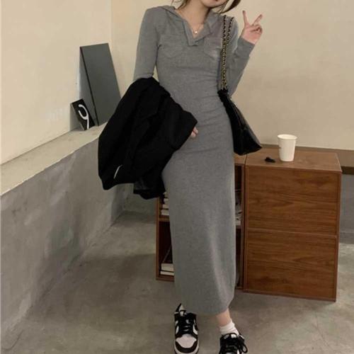 후드 슬림핏 롱 원피스 캐주얼 편안한 데일리 미디롱 WFIY8JZ