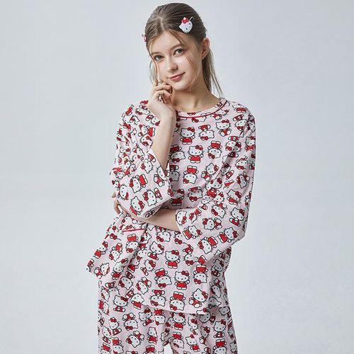 [알콩단잠]산리오 헬로키티 여성잠옷 파자마 순면 라운지웨어 홈웨어 긴소매 실내복 상하세트