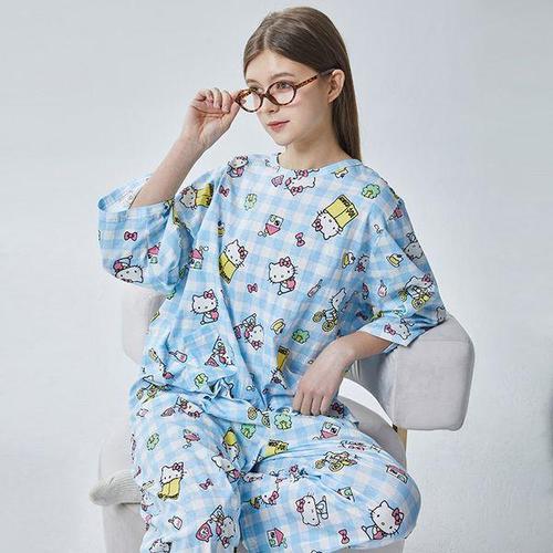 [알콩단잠]산리오 헬로키티 여성잠옷 순면 9부 홈웨어 라운지웨어 실내복 파자마바지