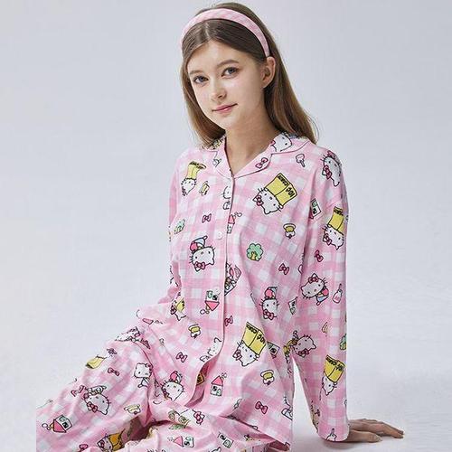 [알콩단잠]산리오 헬로키티 여성홈웨어 실내복 잠옷 라운지웨어 파자마 긴소매 순면 상하세트