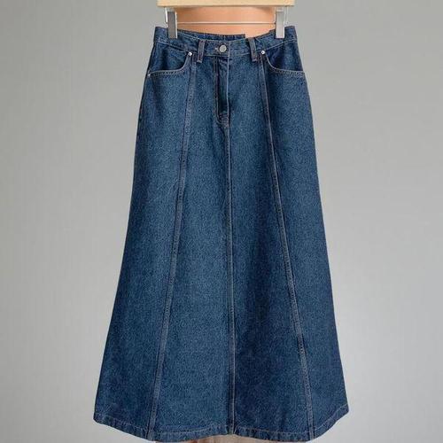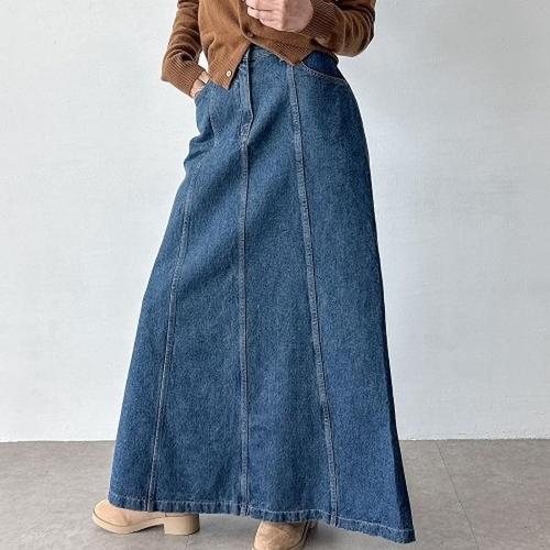 [옷자락] 여자 키큰녀 맥시 플레어 절개 논스판 데님 롱스커트