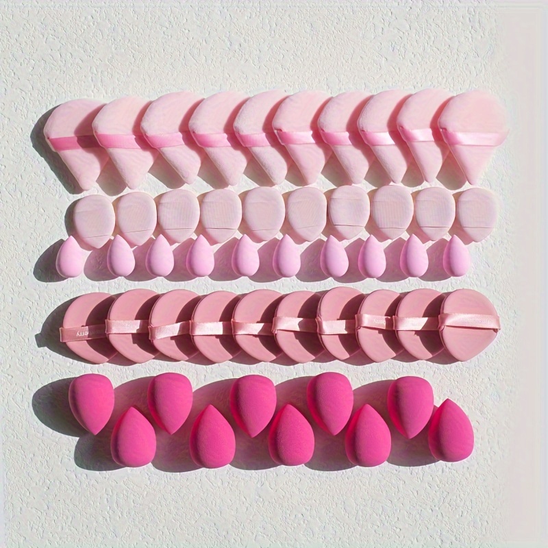 TEMU 50개 메이크업 도구 콤비네이션 세트, 루스 파우더 퍼프 10개, 쿠션 퍼프 10개, 쌀가루 퍼프 10개, 메이크업 스펀지 10개, 중간 크기 메이크업 스펀지 10개, 리퀴드 파운데이션, 컨실러용 혼합 뷰티 스펀지, 라텍스 무첨가, 건식 및 습식 사용 가능, 모든 피부 타입에 적합