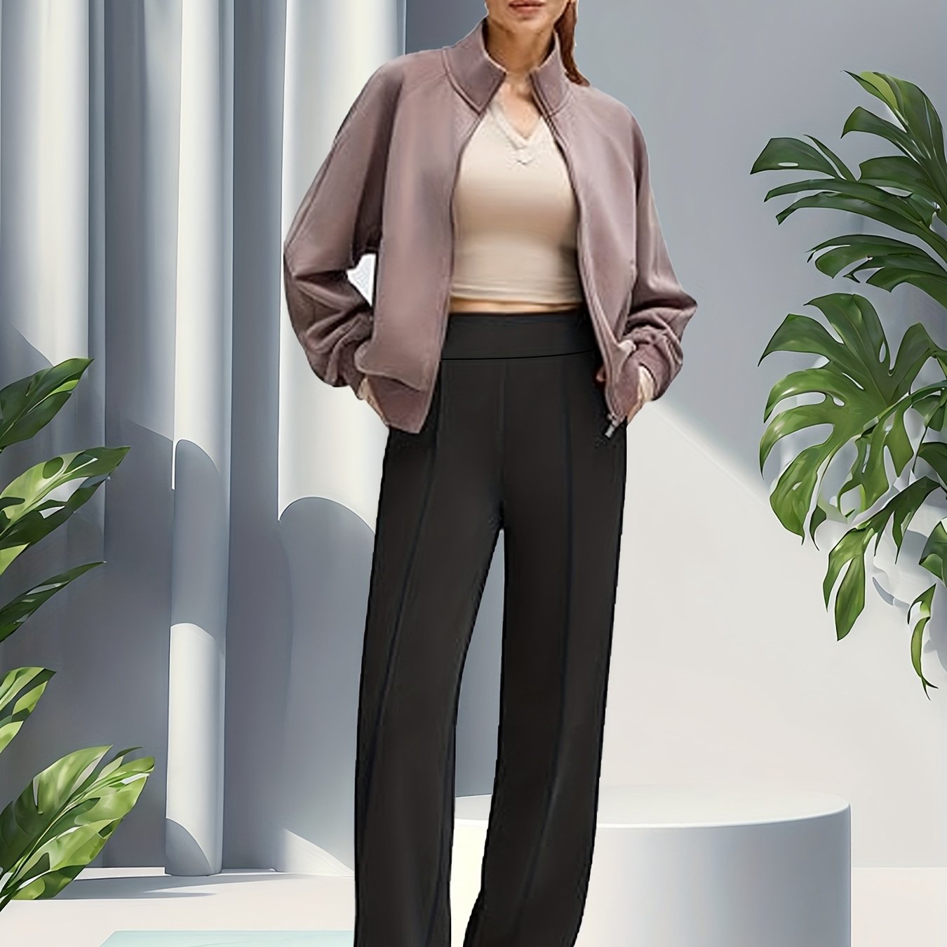 TEMU 1개 여성용 하이웨이스트 솔리드 컬러 캐주얼 와이드 레그 팬츠, 슬림핏 트라우저, 여성용 루즈하고 우아한 출근룩