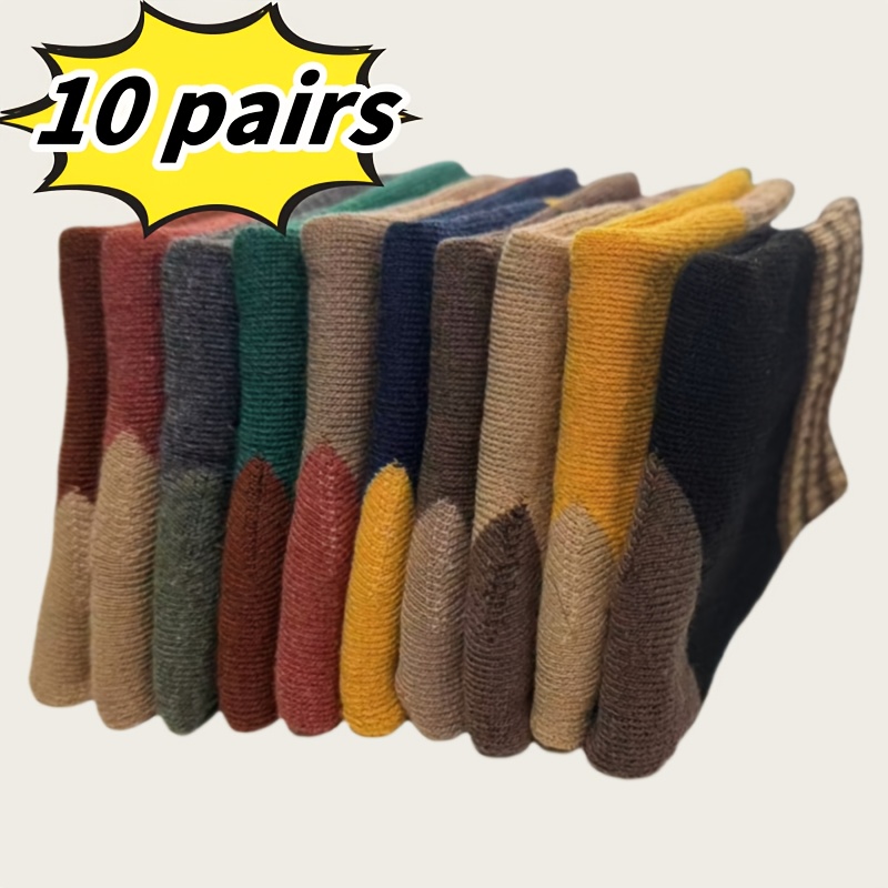 TEMU 남녀용 10 쌍 두꺼운 허벅지 상의 양말 - 따뜻한 줄무늬 및 단색, 폴리에스터/스판덱스 블렌드, 가을 및 겨울 야외 사이클링에 완벽한, 손세탁/건조 세탁, 겨울 양말, 가을 신발, 편안한 니트 양말, 내구성 있는 니트 양말