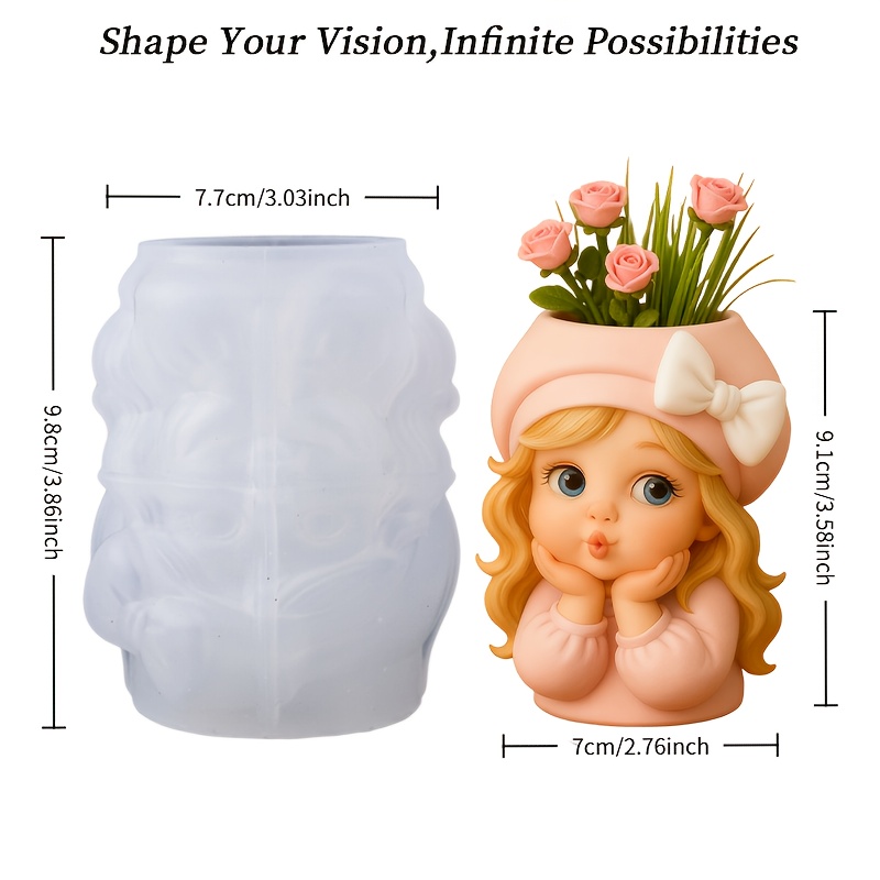 TEMU 이 실리콘 레진 몰드는 귀여운 작은 화분 디자인으로, 사랑스러운 피규어와 리본 장식이 함께 제공됩니다. 탈지가 용이하며, 석고 장식품, 보관 용기 또는 레진 화분 제작에 재사용할 수 있습니다. 다양한 용도로 적합합니다.