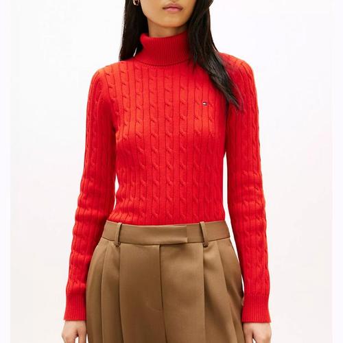 [해외배송] 타미 여성 꽈배기 니트 터틀넥 스웨터 Crimson