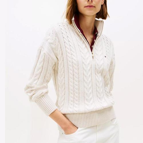 [해외배송] 타미 여성 꽈배기 니트 쿼터 집업 스웨터 Beige