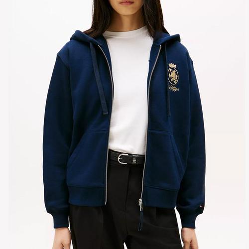 [해외배송] 타미 여성 골드 크레스트 로고 지퍼 후디 Dark Blue