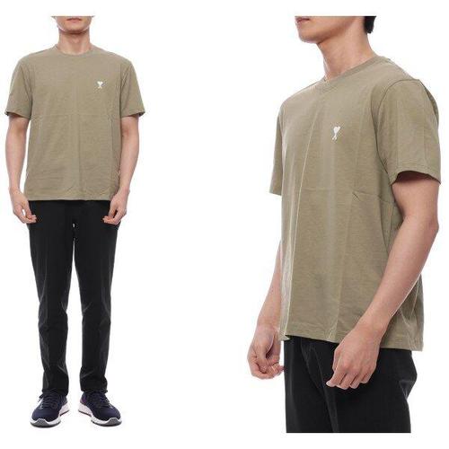 [아미]아미 스몰 하트 로고 박시 핏 반팔 티셔츠 헤더라이트베이지 UTS005-726-2712