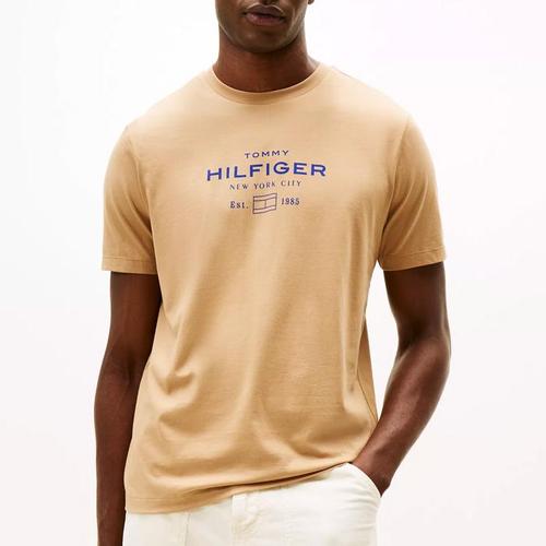 [해외배송] 타미 남성 힐피거 그래픽 로고 반팔티셔츠 Camel