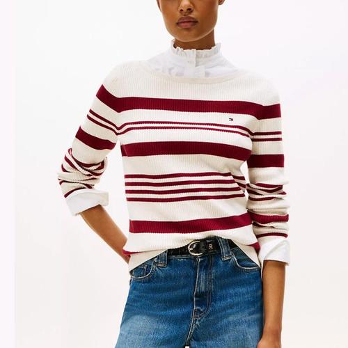 타미 여성 케이블 니트 크루 스트라이프 스웨터 Navy Stripe