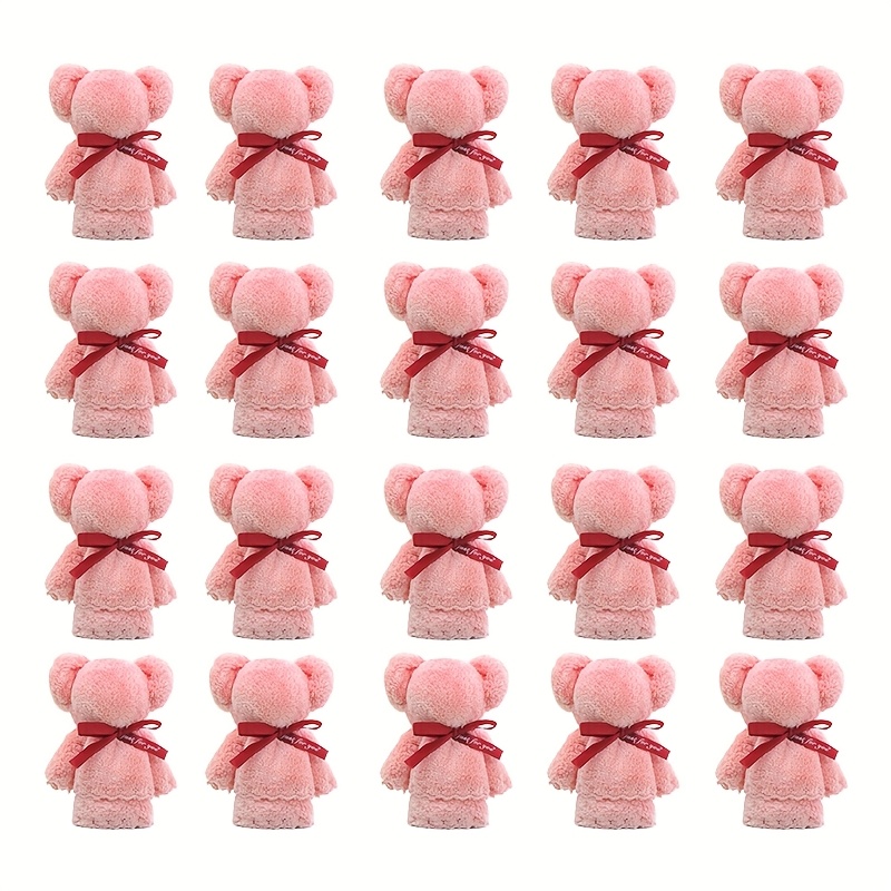 TEMU 20개의 플러시 코랄 플리스 곰 수건 - 결혼식, 생일 및 파티에 적합 | 부드럽고 흡수력이 뛰어난 선물 아이디어, 두꺼운, 사각형, 실용적, 귀여운 곰 수건, 높은 미적 가치와 실용성을 갖춘|수건