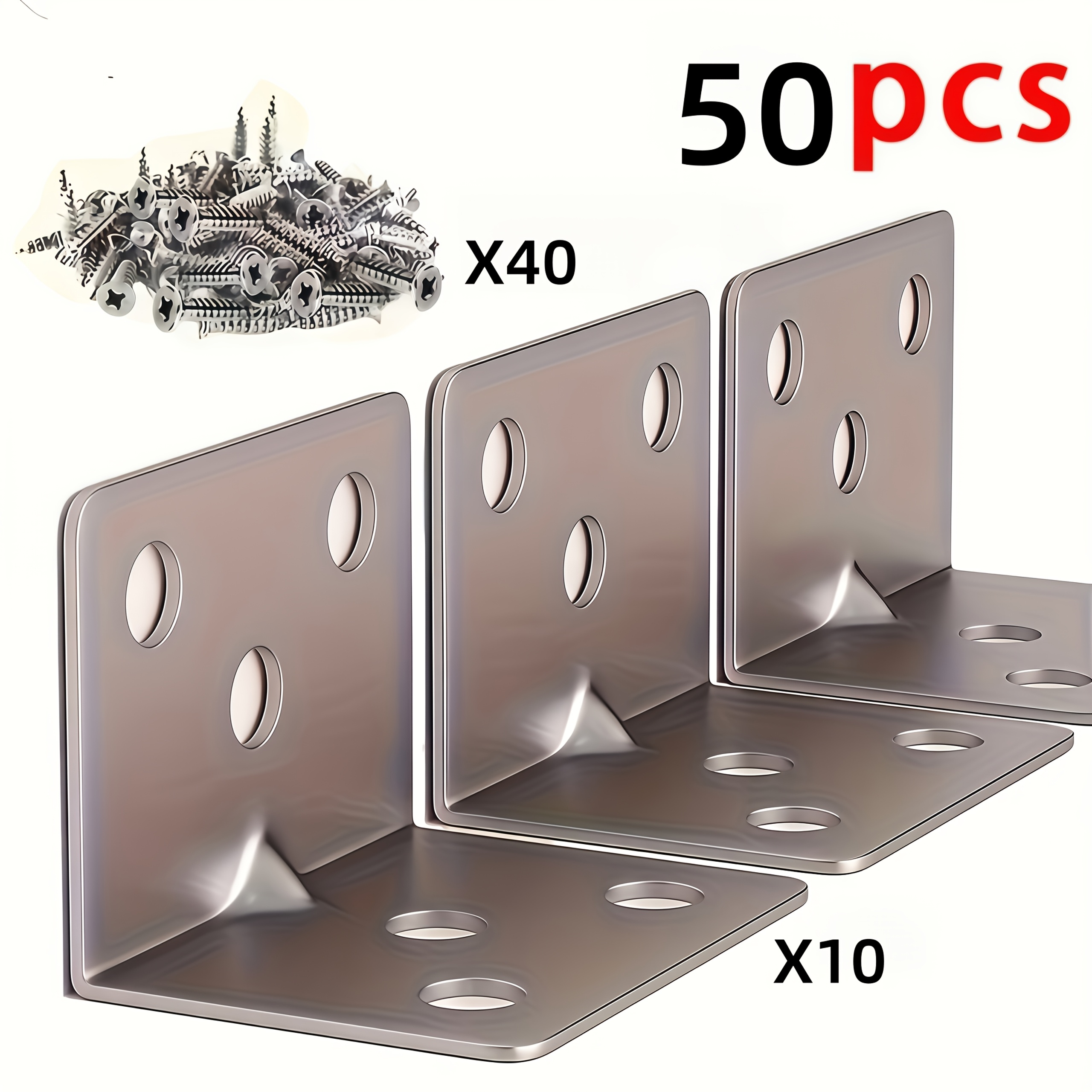 TEMU 50개입 고강도 304 스테인리스 스틸 L자 모양 코너 브래킷 - 90° 각도 커넥터, 미리 드릴된 구멍 포함, 가구, 선반, 캐비닛, 캐비닛 제작용, 튼튼한 디자인, 집수리, 접이식도어레일, 도어가이드
