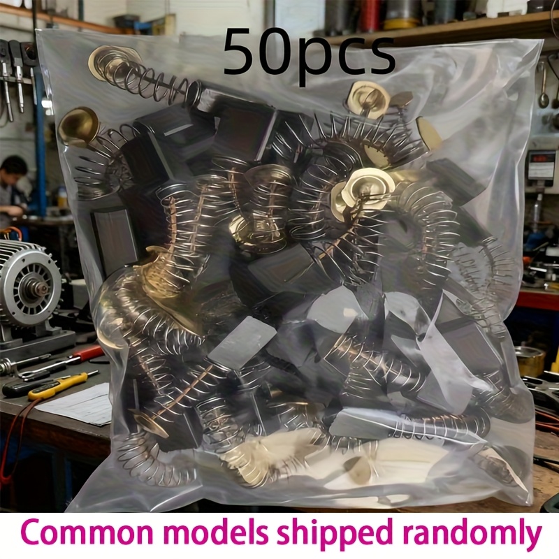 TEMU 50개 헤비듀티 카본 브러시 교체 키트 - 모터 수리 부품 포함, 헤비듀티 금속 베이스, 드릴/샌더/그라인더/모터용 다양한 사이즈 - 블로워, 발전기, 전기 기술자, DIY 및 모터 수리용 (정밀 사이즈 차트)