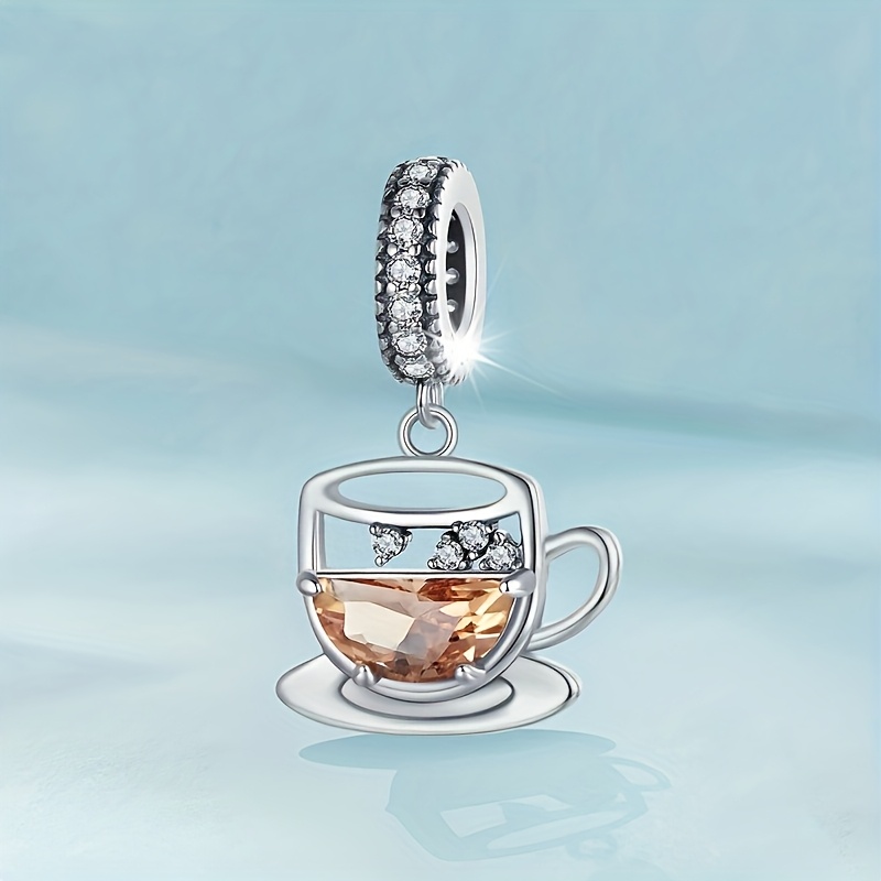 TEMU 우아한 커피 컵 펜던트 - 반짝이는 합성 지르코니아, 구리, , 파티, 뮤직 페스티벌, 휴가에 완벽, 커피 애호가 선물, 파티 액세서리, 세련된 디자인에 이상적인 선물