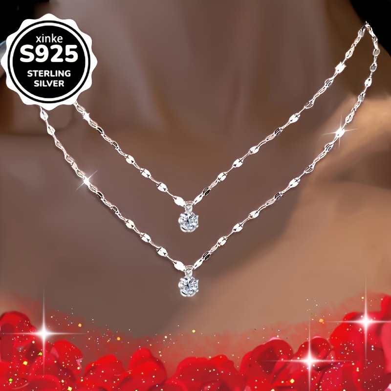 TEMU 두 개의 우아한 925 스털링 실버 합성 지르코니아 펜던트 목걸이, 반짝이는 큐빅 합성 지르코니아 장식, 일상 착용, 파티, 모임, 연회, 데이트, 해변 나들이에 완벽. 이상적인 휴일 선물|은목걸이