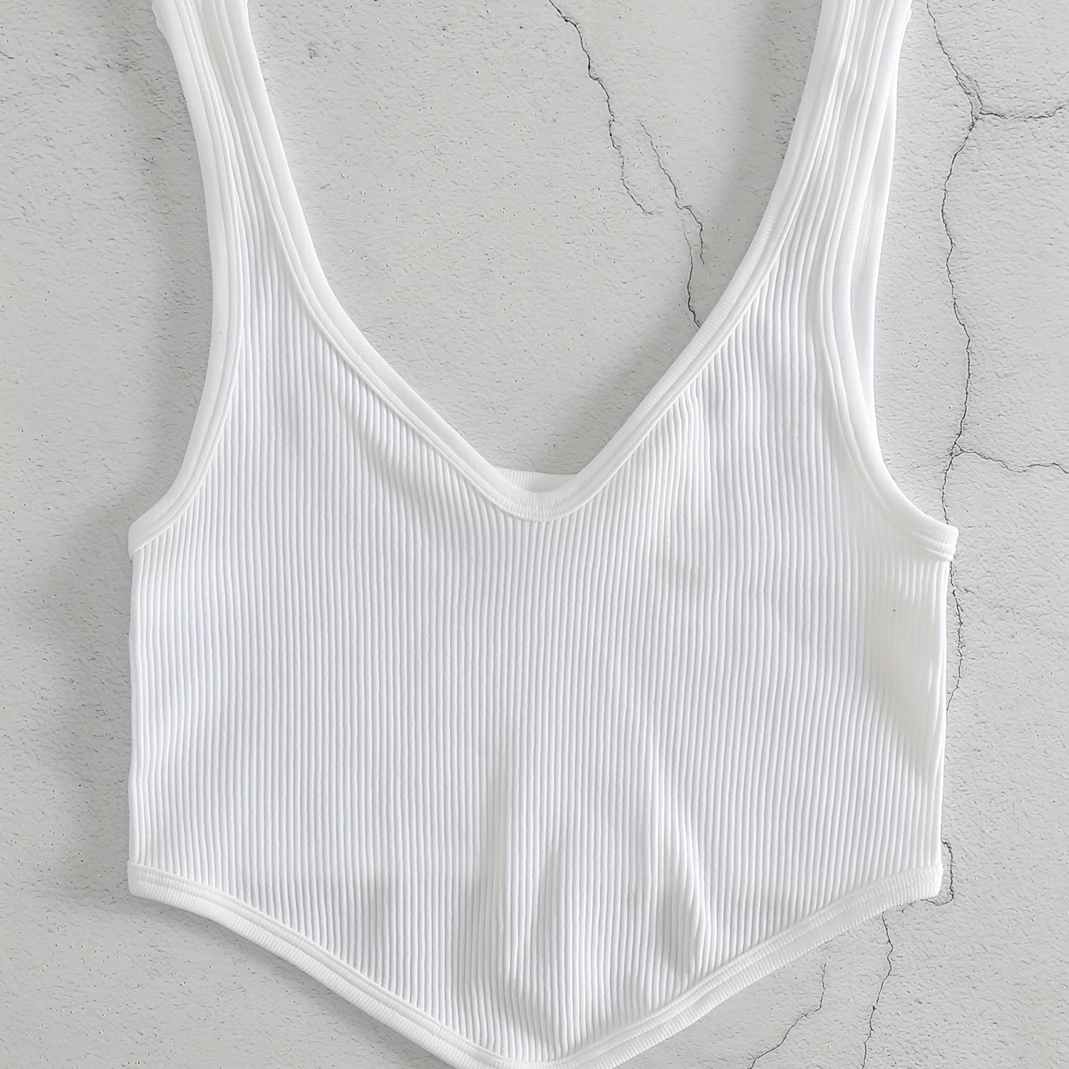 TEMU Fly Stride 심리스 골지 코르셋 스타일 패션 크롭 탱크 탑 | V넥, 높은 신축성, 민소매, 캐주얼 기본, 올 시즌, 인어 소매, 골지 디테일