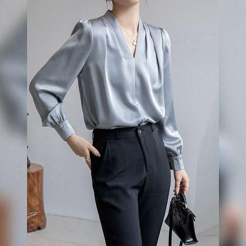 [에이치플러스몰]여성 봄여름 가을 블라우스 정장 캐주얼 브이넥 코디