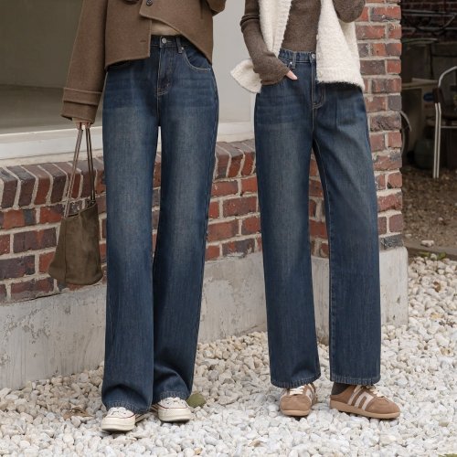 [드리다]여자 봄 가을 돌청 빅사이즈 밴딩 와이드 데님 팬츠 40대 미시 캐주얼
