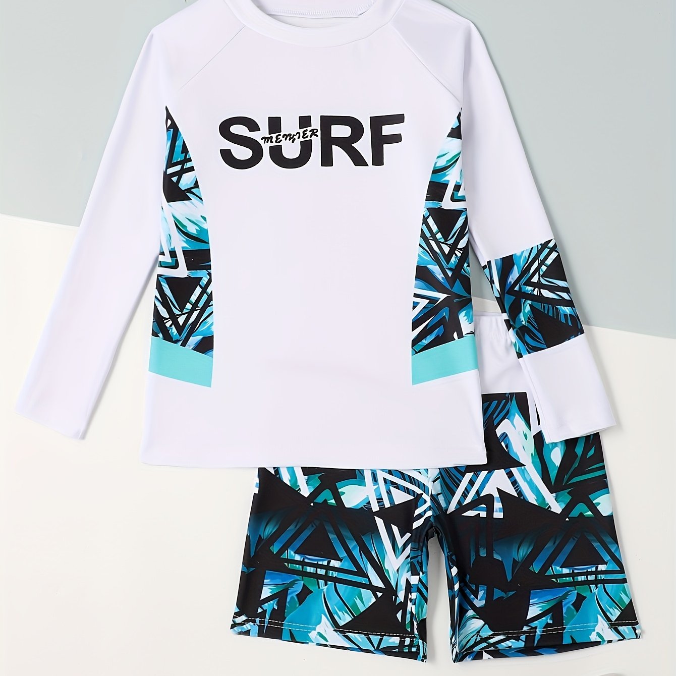 TEMU 어린이용 남아 수영복 분리형 긴팔 자외선 차단 전문가 기어|레쉬가드|래시가드