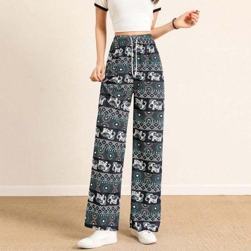 [오너클랜]인기상품 여성용 쿨 밴딩 와이드 팬츠 태국 코끼리 프린트 통바지 [WFLKZPU_260304]