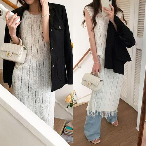 플러리싱 / 썸머 슬리브리스 태슬 롱 니트 플러리싱