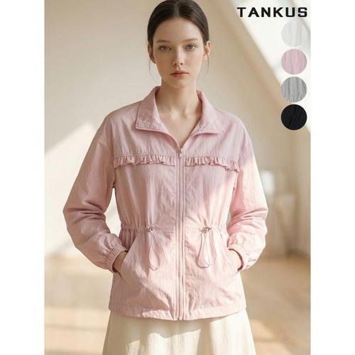 [탱커스]여성 프릴 디테일 스탠 카라 바람막이 점퍼