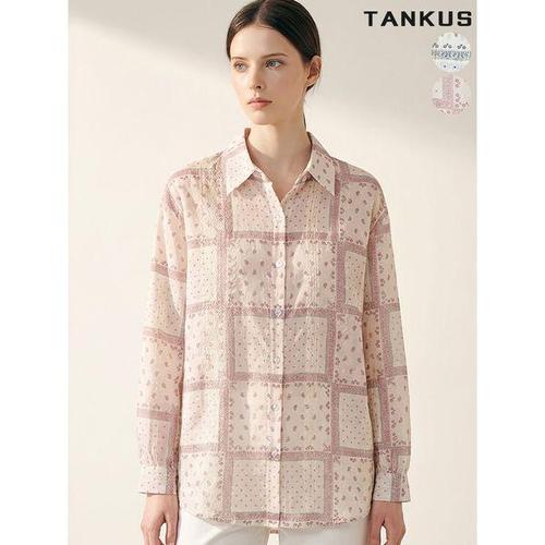 [탱커스]여성 시스루 페이즐리 패턴 루즈핏 셔츠