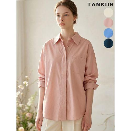 [탱커스]여성 히든 버튼 뒷핀턱 루즈핏 셔츠