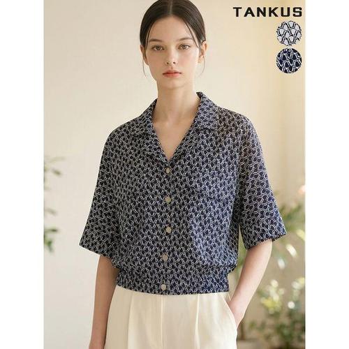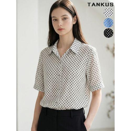 [탱커스]여성 기하학 프린팅 카라 숏 반팔 셔츠