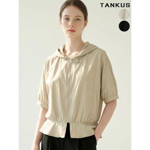 [탱커스]여성 5부 써머 스판 프릴 후드 집업