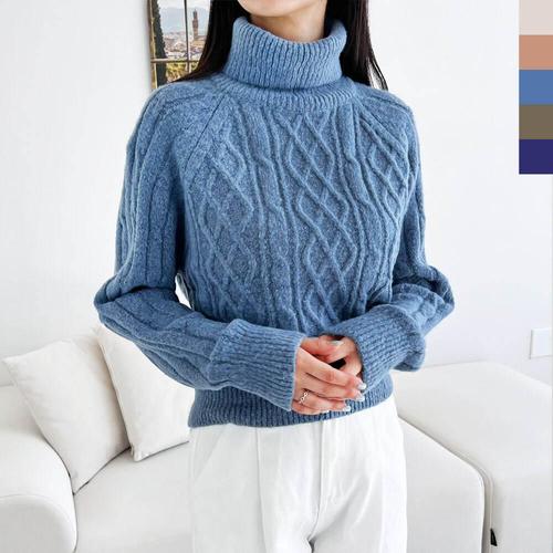 [굿쇼핑몰_의류]여자 케이블 꽈배기 폴라 크롭 긴팔니트