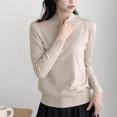 [신상오픈런]여자 소프트 목폴라티 견장 롱슬리브 무지 긴팔 니트