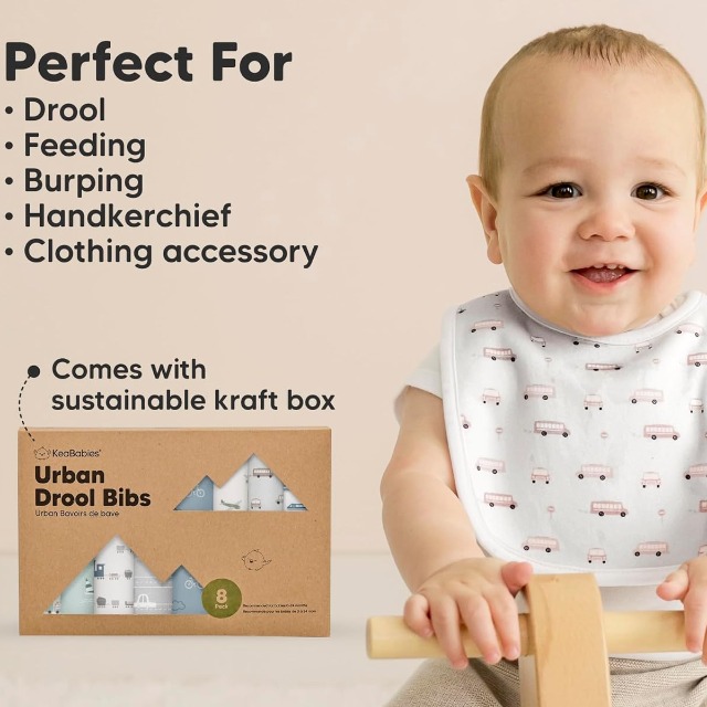 바냐 360도 롤링 거즈면 방수 턱받이 5종 세트 유아 신생아 선물포장 무형광 아기 여아 남아