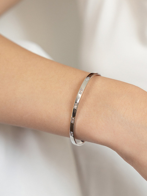 [타티아나] (실버925) 바게트 큐빅 오픈 뱅글 BR2198