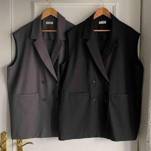 [드리다]원버튼 테일러드 카라 빅사이즈 슬릿 롱 베스트 조끼 40-50대 미시 중년여성 엄마옷 하객 모임