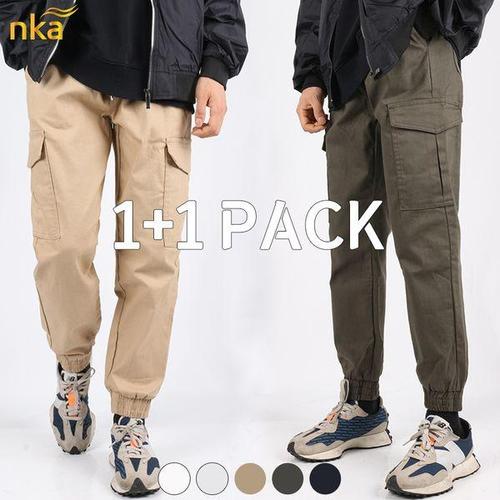 [노멀쉐이크][2PACK] [당일출고][기모X/기모O 선택] 포켓 카고 테크웨어 슬림 밴딩 조거팬츠