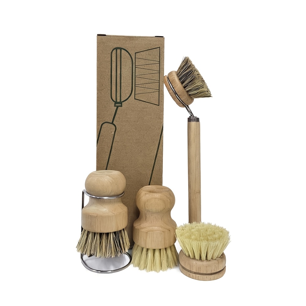 TEMU 식물 섬유 냄비 솔 5종 세트, 긴/짧은 나무 손잡이, 사이잘/코코넛 섬유 멀티헤드 주방 기름때 청소 도구, 나뭇결 스타일 흠집 없는 조리기구 클리너, 주부의 요리와 청소에 필수, 주방용품 및 냄비 청소 도구