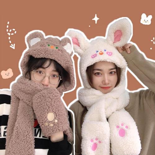 털모자 목도리 후드 보온 곰 토끼 귀여운 겨울 WFKN4ON