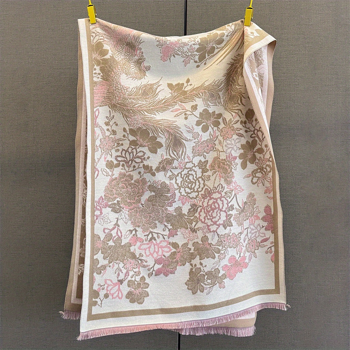 TEMU 여성용 플로럴 프린트 캐주얼 스카프 - 폴리 에스터 가벼운 반투명 숄, 통기성 목도리, 다용도 장식 패션 스카프, 깃털 없음, 손세탁 가능 - 1개