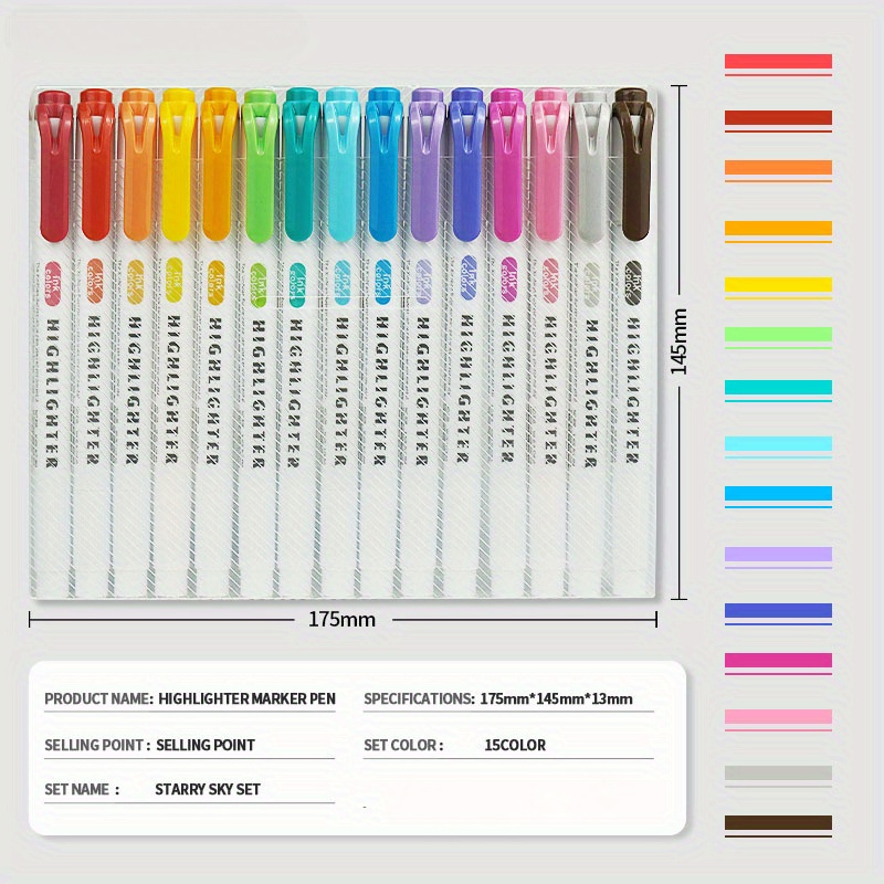 TEMU 15색 파스텔 하이라이터 세트, 두꺼운 & 가는 팁의 양방향 하이라이터, 다양한 따뜻한 색상, 학교, 사무실 및 저널링 용품에 적합