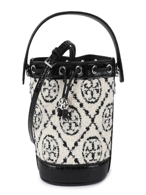 토리버치 T 모노그램 코티드 캔버스 버킷백 164889200 Brown