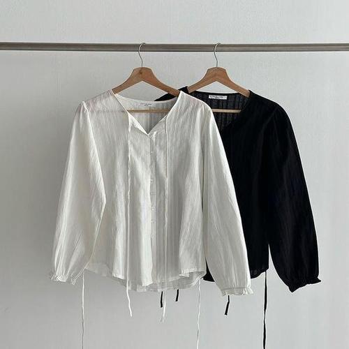 [다잇템_패션]여성 오픈넥 단가라 뒷끈 블라우스