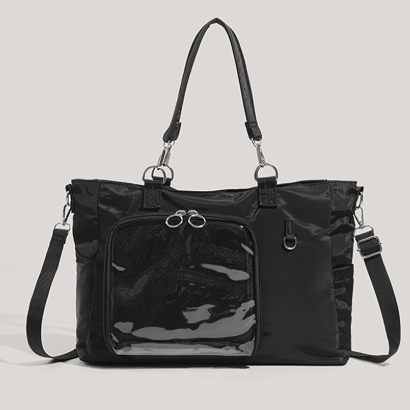 TEMU 여성용 일본/한국 애니메이션 아카데미 스타일 나일론 크로스바디백 - 탈착 가능한 스트랩 & 지퍼 클로저, 대용량 북백 - 출퇴근, 컨벤션, 쇼핑, 파티에 적합한 내구성 있는 캐주얼 핸드백