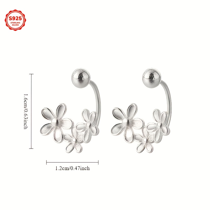 TEMU 여성을 위한 스털링 실버 하이포알러제닉 스크류백 플라워 귀걸이 한 쌍, 세 개의 작은 꽃, 신선하고 달콤한 다용도 고급 귀걸이