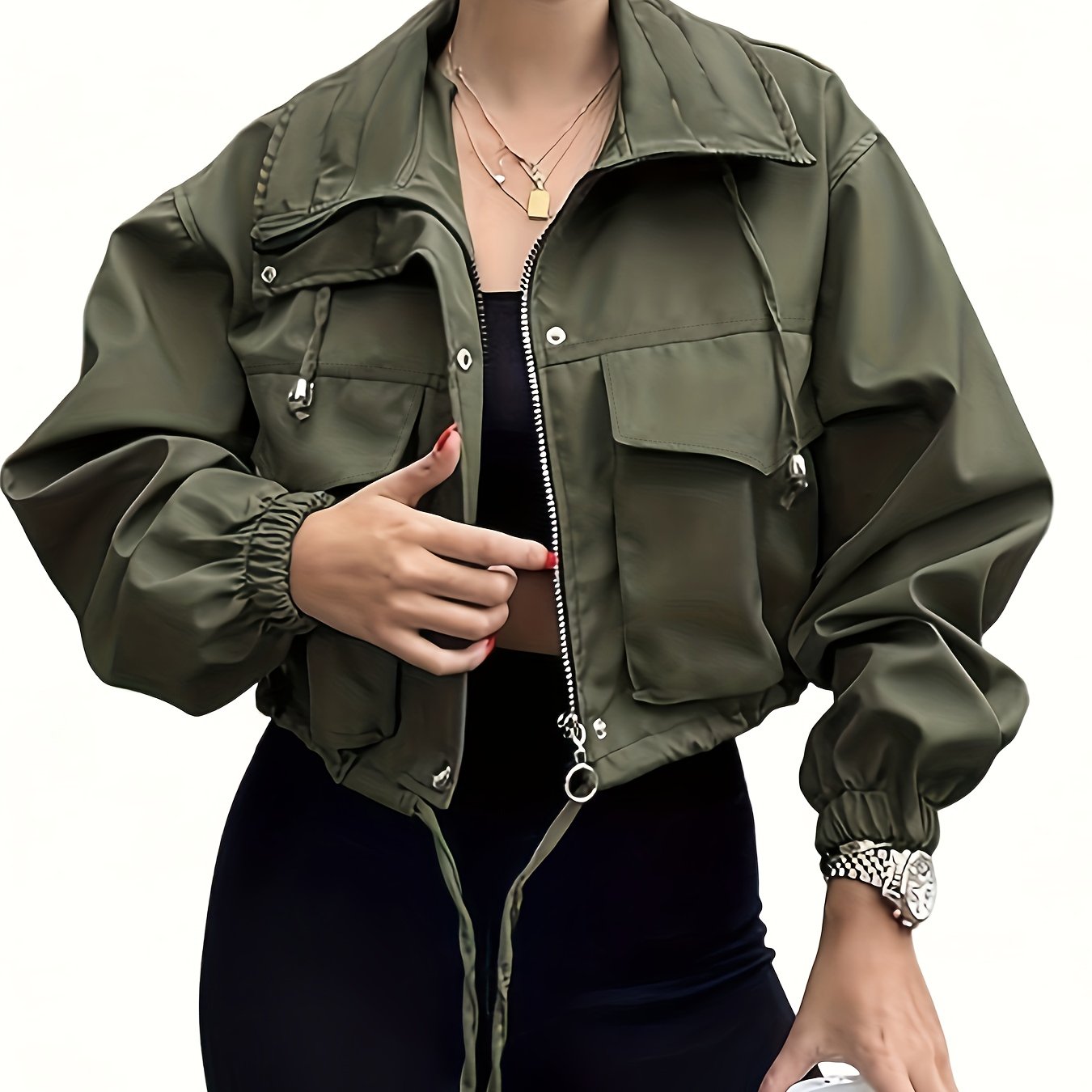 TEMU 우아한 숏 지퍼 트렌치 코트, 칼라 디자인으로 캐주얼한 휴가 및 가을-겨울 출퇴근에 완벽합니다.
