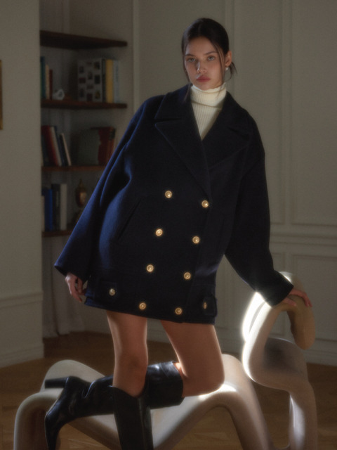 [하우스오브차] 톰보이 울 하프 피 코트_네이비