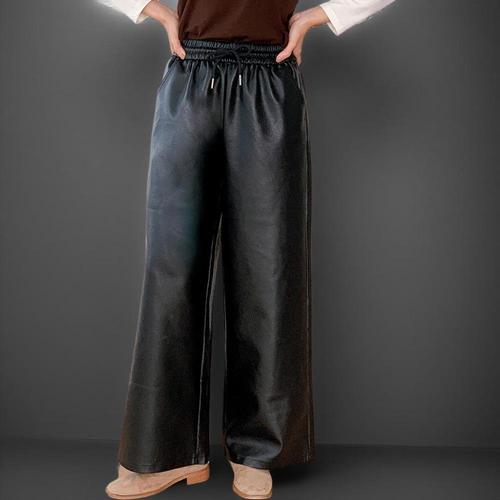 [신상오픈런]여성 와이드 가죽팬츠 벨트밴드 가을용 통바지