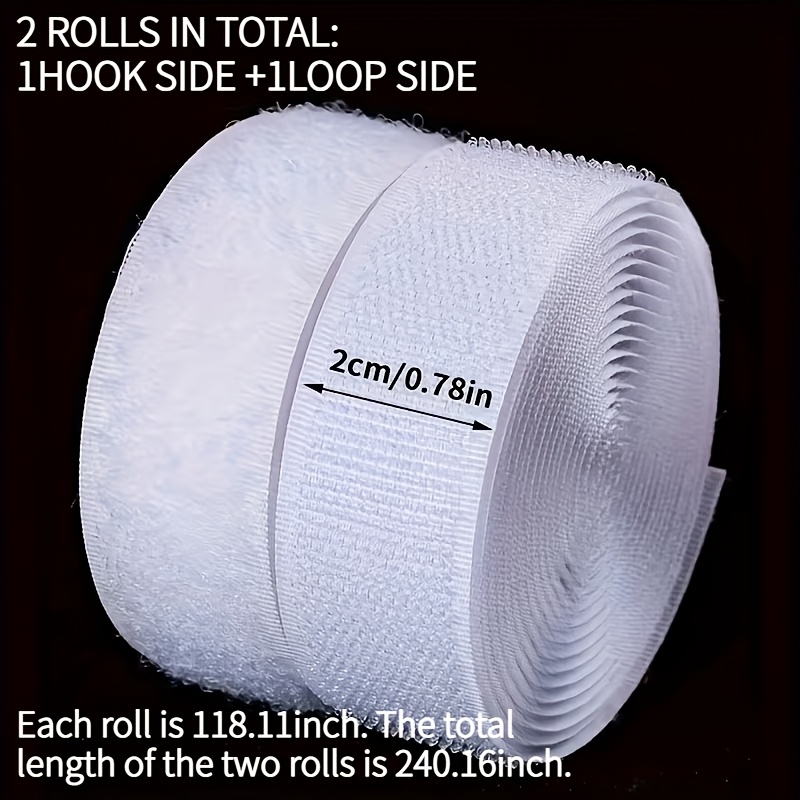 TEMU 118.11인치/240.16인치 자가 점착식, 강력 접착, 흑백 색상 - 학교, 가정 및 사무실에서 사용하기 매우 적합, 자가 점착식 벽걸이 후크, (후크 측과 루프 측으로 2롤으로 나누어짐) 총 2롤